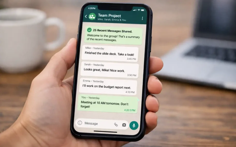 Esse novo recurso, chamado de Group Message History, permite que tanto administradores quanto membros que adicionarem novos participantes escolham compartilhar as últimas mensagens trocadas. A partir de agora, quem estiver adicionando uma pessoa pode selecionar quantas mensagens recentes quer enviar, com opções que vão de 25 até 100 mensagens, criando um contexto mais claro sobre o que está sendo debatido no grupo.