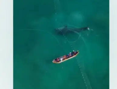 Segundo relatos, o tubarão ficou preso após se aproximar de uma área onde havia uma rede estendida no mar. A espécie, considerada a maior de peixe do mundo e de alimentação baseada em plâncton, costuma transitar por regiões costeiras e pode acabar entrando acidentalmente em redes de emalhe, o que representa risco tanto para o animal quanto para a atividade pesqueira.