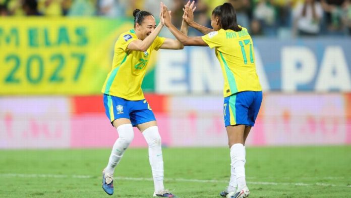 A partida contra as canadenses foi equilibrada no primeiro tempo, com chances para os dois lados. O Brasil chegou com perigo em cabeçada de Lauren na trave e finalização de Ludmila defendida pela goleira Sheridan, enquanto o Canadá respondeu com finalização de Olivia Smith. No segundo tempo, o Brasil cresceu, abriu o placar cedo e ainda teve de segurar a pressão após a expulsão de Ary Borges aos 35 minutos da etapa final, com destaque para as defesas da goleira Lelê.